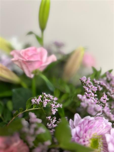 Our florist choice handtied is our most popular floral gift. Our florist will create you a beautiful unique handtied arrangement crafted using the freshest seasonal stems available on the day. Presented in a Aqua box making the perfect floral gift, no need to rush and put them in a vase straight away.